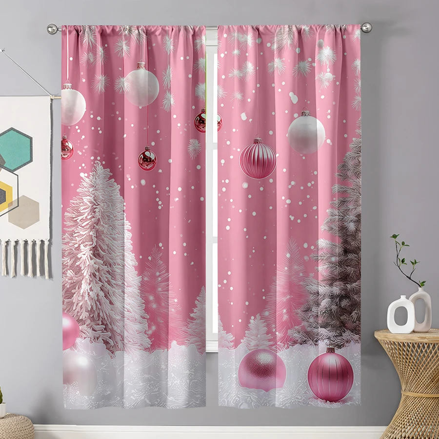 2Pcs Pink Christmas Tree Curtains with Pole Pockets Designed to Protect Privacy, Suitable for Decorating Various Scenes